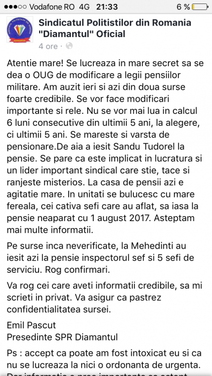 Si inca o intrebare, chiar daca abuzez, am vazut la fostii colegi de la evidenta care au iesit la pensie ca Directia pentru Evidenta Persoanelor si Administrarea Bazelor de Date (DEPABD), la care suntem sau am fost angajatii, nu acorda grupa a doua de munca (pentru conditii deosebite) decat pentru anii 2001 – 2005.04.01. Pentru perioada in care am fost detasati conform prevederilor Ordonantei Guvernului nr. 84/2001 privind infiintarea, organizarea si functionarea serviciilor publice comunitare de evidenta a persoanelor, in cazul meu pentru perioada 01.04.2005 - 15.08.2009 cine ar trebui sa imi faca incadrarea in grupa de munca DEPABD, al carui angajat am fost sau Consiliul Judetean (Directia Publica Comunitara Judeteana pentru Evidenta Persoanelor) unde am functionat ca politist detasat. Mentionez ca in perioada 2001 – 2009 am efectuat aceleasi activitati specifice, in aceeasi locatie respectiv sediul IPJ si am primit sporul pentru conditii deosebite. Asta pentru a sti pe cine trebuie sa actionez in instanta in cazul in care nu mi se recunoaste incadrarea in grupa II de munca. ;)